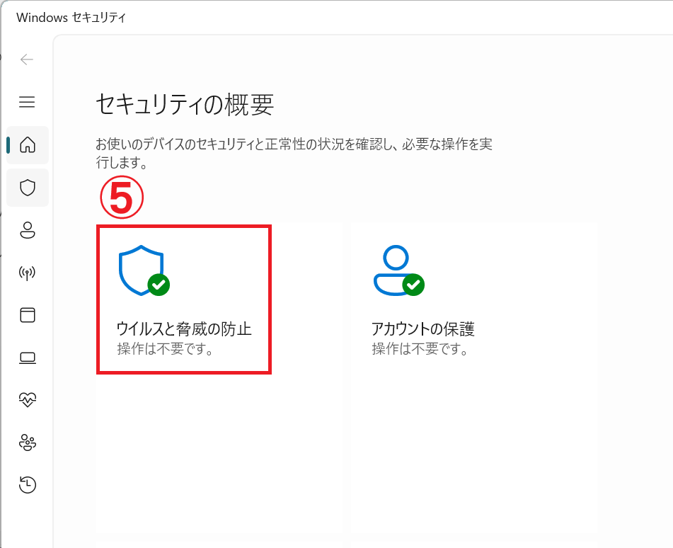 「ウイルスと脅威の防止」に緑色のチェックマーク(✅)が入っていれば、正常に動作しています。