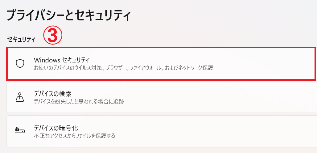 画面上部にある「Windows セキュリティ」という項目をクリックします。